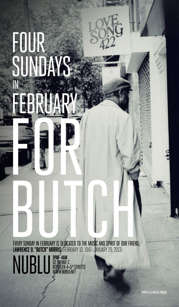 This sunday The Butch Morris Dedication will start at 6pm with whoever wants to bring good food, then poets, musicians, bands or individuals, Dj goes on until 4am!… Come on by!